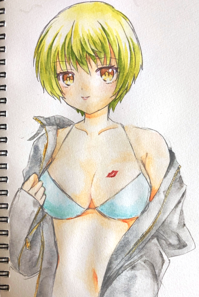 水彩色鉛筆で塗った。